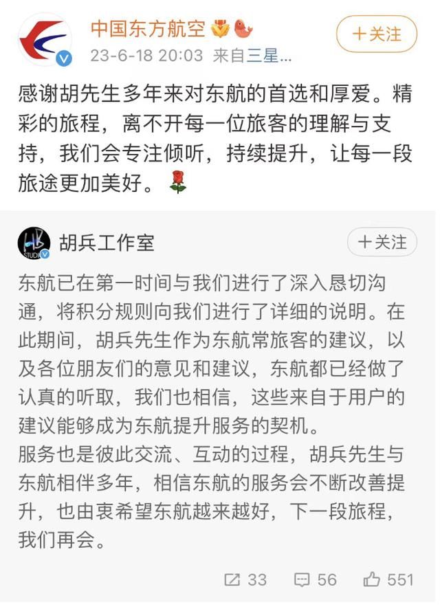 随后,东方航空也发文