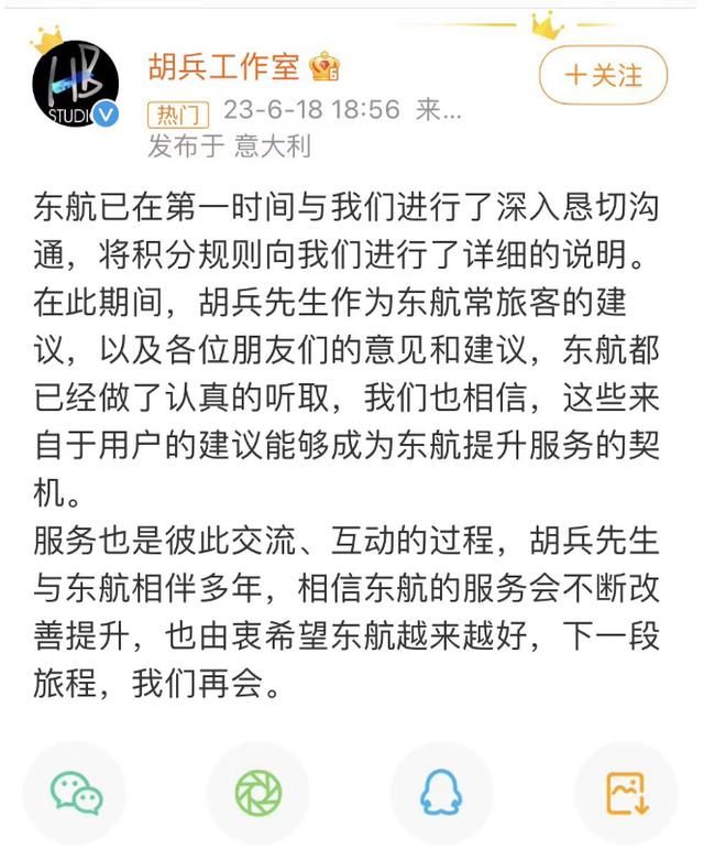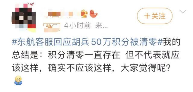 “胡兵50万积分被东航清零”
