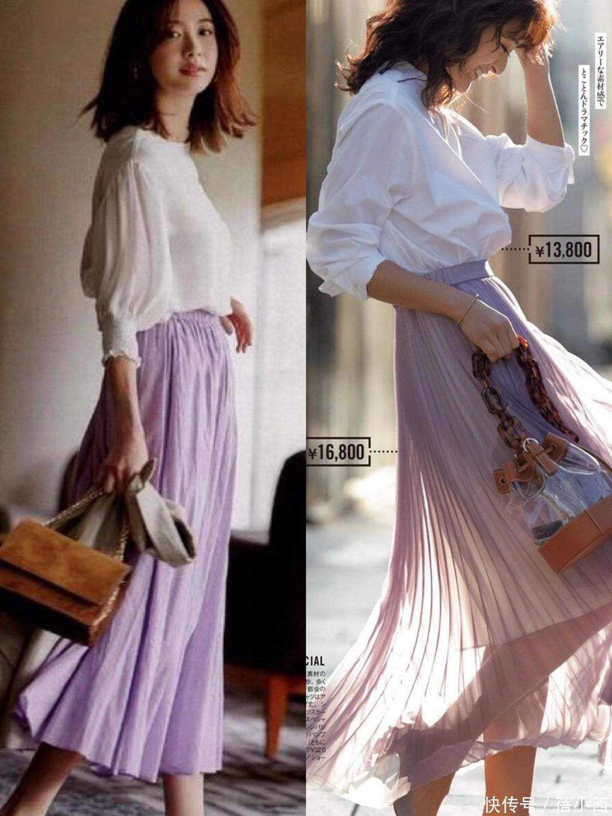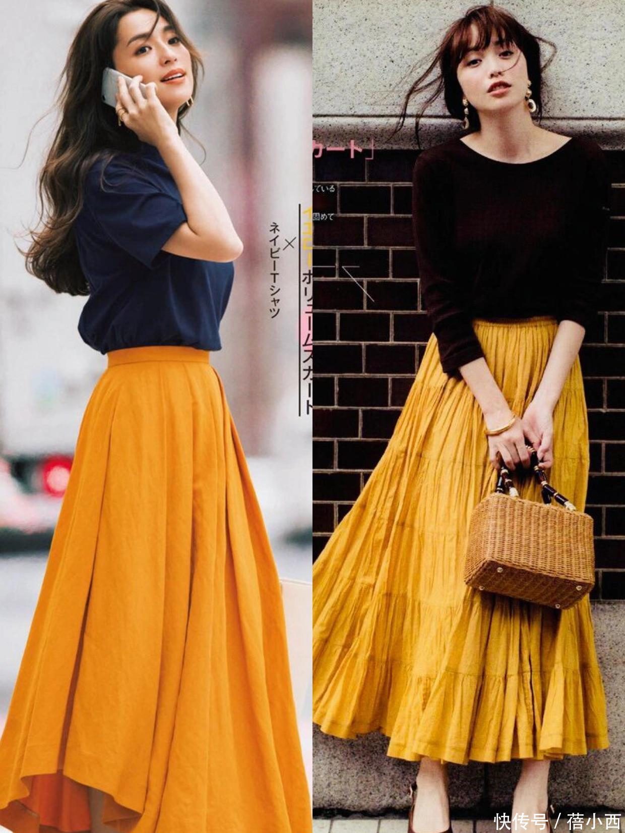 上头两款造型搭配的是相比长的A字半身裙,能遮住大部分双腿弧线iba在线,是腿粗好意思眉们的福音。